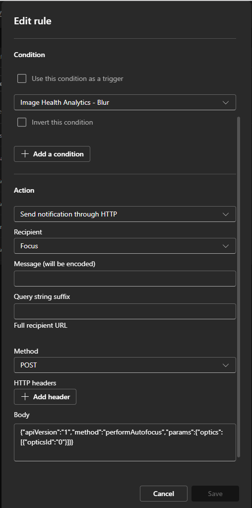 Předem nakonfigurované Axis pravidlo spustí VAPIX dotaz na přeostření kamery. Návštěvníci si tak mohou užívat bezproblémový záznam bez nutnosti manuálních oprav.